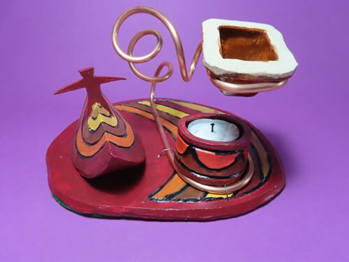 I came up with this concept while I was on vacation with my family in Florida. We were riding bikes and this image came to mind. While it looks simple it is actually very difficult to produce it in clay. My first attempt, a much larger piece, took many times to get it to work. The striped wedge piece represents a slice of life and the figure is riding on it trying to maintain balance. I hope you order this one because it is such a challenge to create.