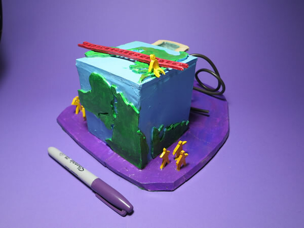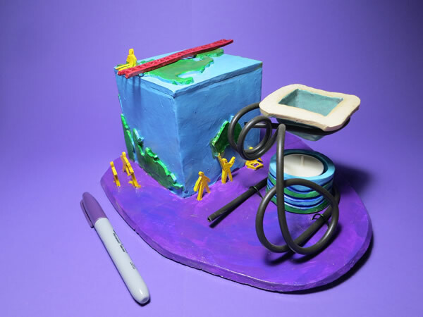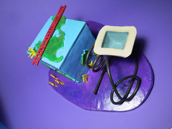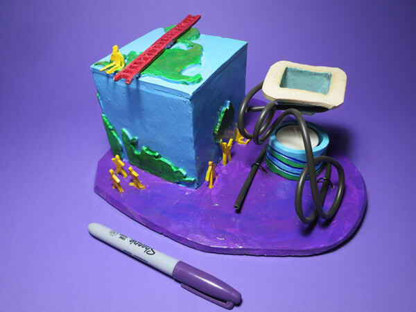 My Artist friend, Marlan Yoder, gets credit for this piece. When he first moved to the Atlanta area I went down and visited him. He showed me a pastel that he was working on to try and loosen up his style. The drawing was an outline of a flat square earth and he told me what he envisioned for the rest of the drawing. I added to his idea and put the ladder on top and the people down below. A lot of times I feel like the figure sitting alone on top of a square world... maybe alone and not quite fitting... maybe being square and not fitting in a round world. I struggled with the title for this piece.