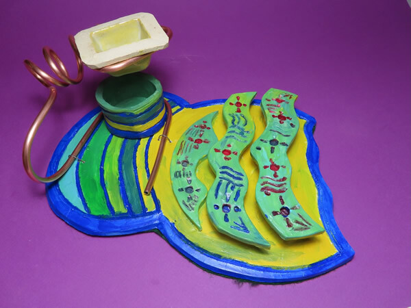 Step Design Stock Status: Custom Curled Metal Color -- Select -- Copper Black $255 This item is custom made. Description Title "Step Design" In this piece I was playing around with design and color and making it 3 dimensional.Size: Length = 9.5" Width = 7" Height = 4"